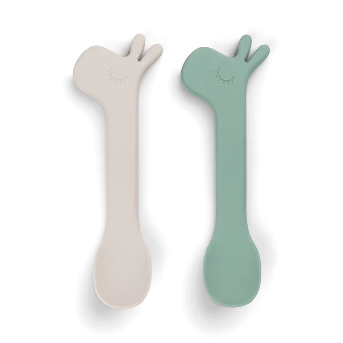 Done by Deer Lalee silikoniset lusikat 2 kpl sopivat lapsen itsenäisen syömisen opetteluun. Erisävyisten lusikoiden päädyissä on suloinen Lalee-kirahvi.