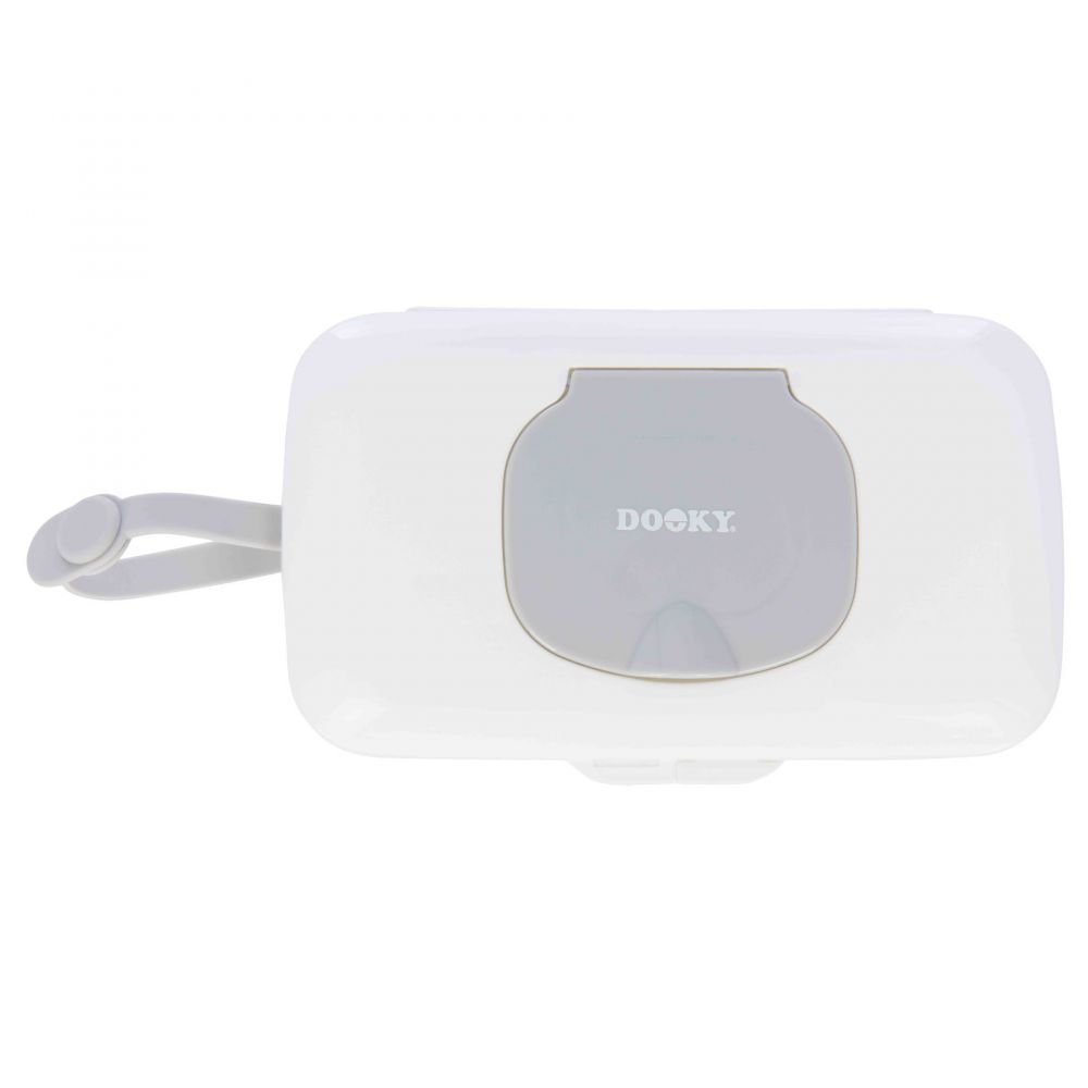Dooky kosteuspyyhkeiden matkaboxi on helppo kiinnittää vaunuhin tai rattaisiin. Matkaboxiin mahtuu max. 25 kosteuspyyhettä, ja se on helppo täyttää uudestaan. Boxissa pyyhkeet säilyvät kosteana ja pehmeänä.
