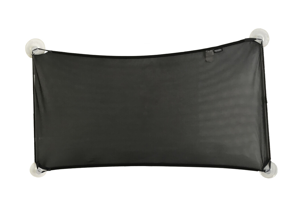 Ezimoov aurinkosuoja takaikkunaan suojaa matkustavaa lasta auringolta. Suurikokoinen aurinkosuoja on helppo kiinnittää takaikkunaan vahvoilla imukupeilla. Aurinkosuoja on yhteensopiva useimpien autojen takalasien kanssa.