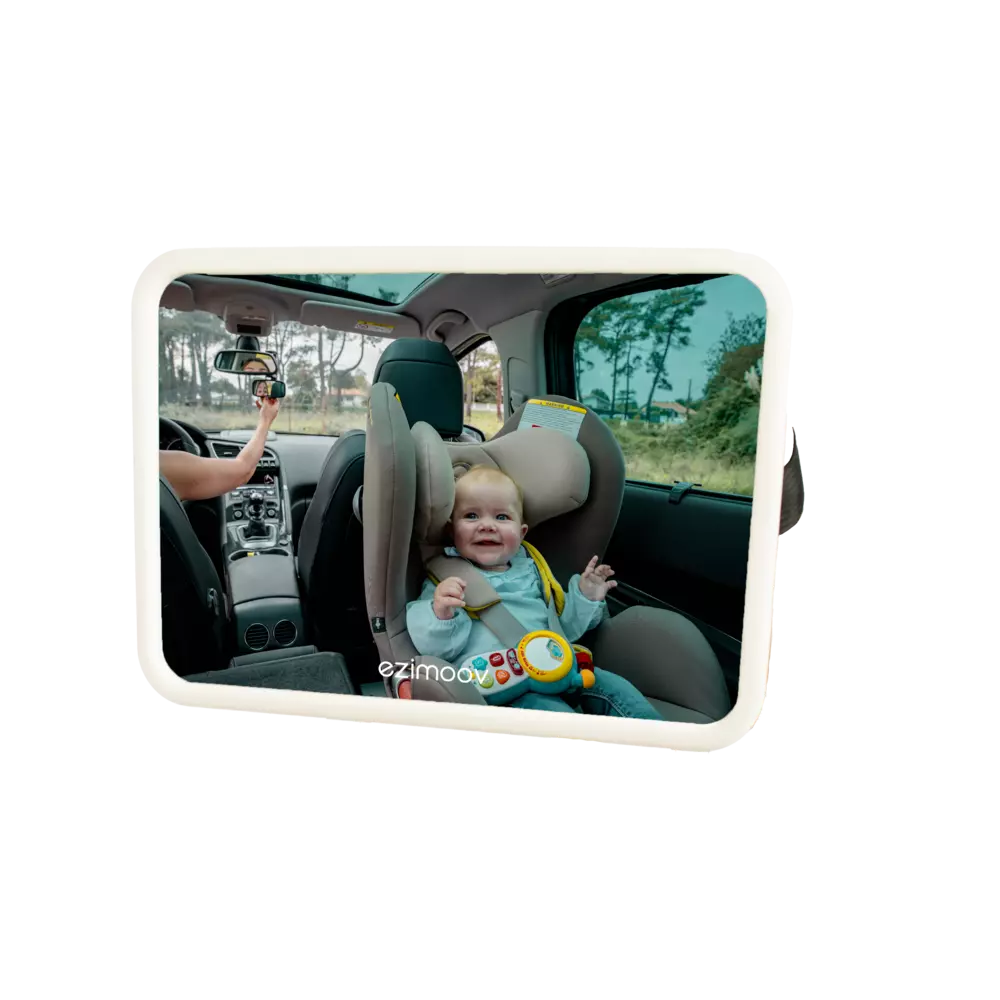 Ezimoov iso peili autoon led-yövalolla on helppo asentaa auton niskatukeen, ja se on säädettävissä 360 astetta. Peilin avulla matkustavan lapsen seuraaminen matkan aikana on helppoa ja turvallista. Led-valoilla varustettu peili on käytännöllinen myös yöaikaan matkustaessa, sillä valon voimakkuutta saa säädettyä kaukosäätimellä. Himmeä led-valo on miellyttävä, eikä häikäise.