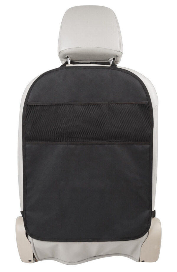 Ezimoov kurasuoja etuistuimen taakse suojaa etupenkin selkänojaa lapsen kengiltä. Suoja on helppo asentaa autoon, ja putsata. Penkinsuojasta löytyy kolme verkkotaskua, joihin saa kätevästi mukaan kaiken tarvittavan.