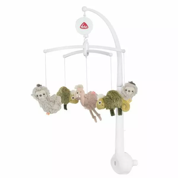 Fehn sänkymobilen "Lazy, Crazy & Pink" saa kiinnitettyä helposti sängyn laitaan koristamaan sänkyä ja auttamaan vauvaa nukahtamisessa. Sänkymobilesta roikkuu suloiset laiskiaiset, kameleontit ja flamingo, jotka ilahduttavat lasta pyöriessään. Lelut voidaan irroittaa mobilesta leikkejä varten. Soittorasia soittaa unilaulua ja samalla pyörittää sänkymobilen hahmoja. Soittorasioiden melodia voi vaihdella.