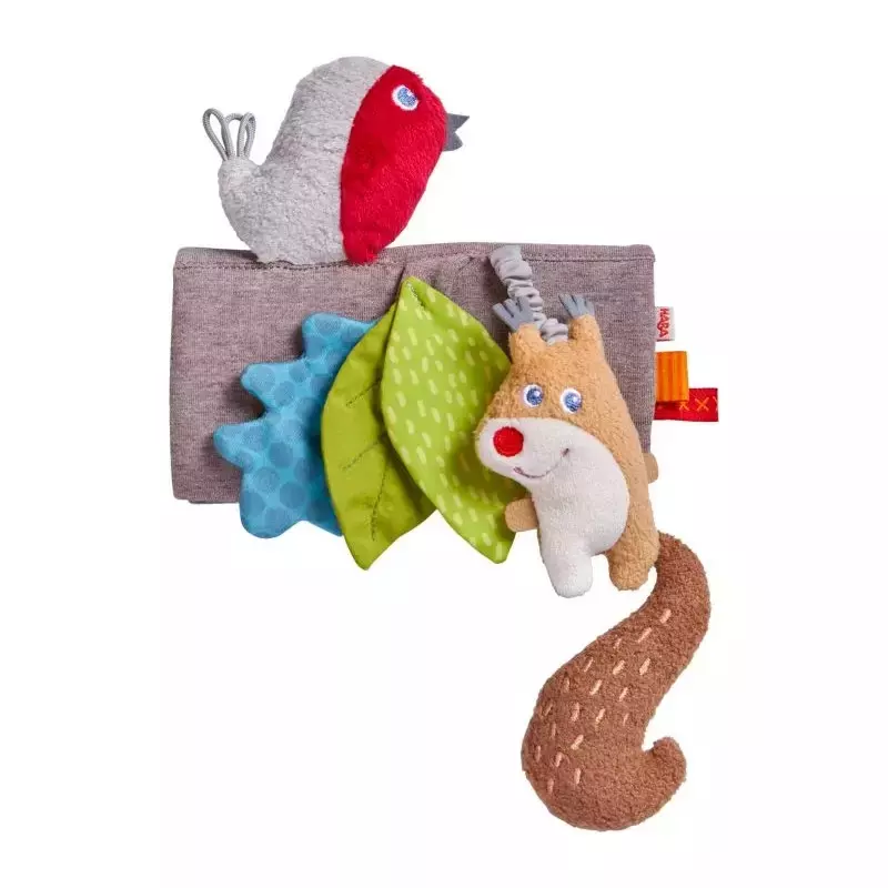 Haba rataslelu turvakaareen viihdytää lasta matkoilla. Tarralla kiinnitettävä lelu voidaan laittaa esim. rattaiden turvakaareen tai turvakaukalon kahvaan. Lelussa on hauska vedettävä orava, sekä lintu, josta kuuluu puristaessa vinkunaa.