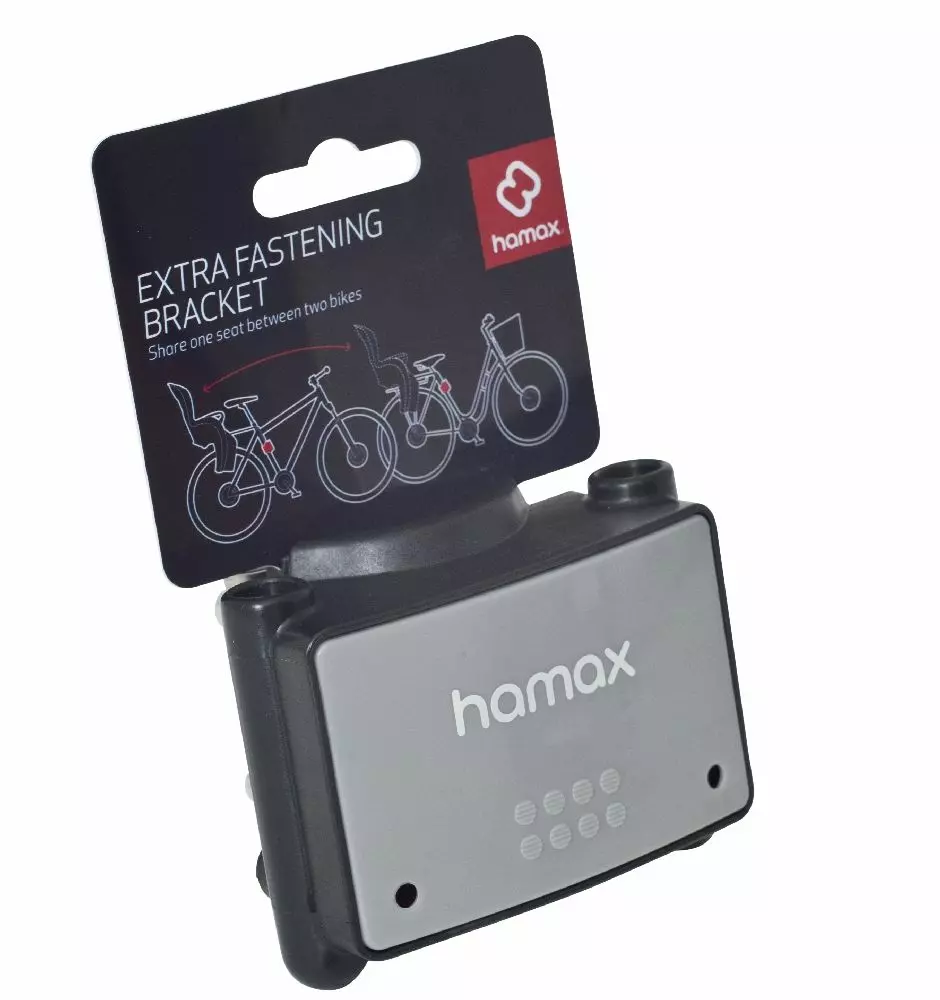 Hamax pyöränistuimen lisäkiinnike toiseen polkupyörään. Tämä lisäkiinnike helpottaa esimerkiksi jos perheessä on kaksi pyörää ja istuinta halutaan siirtää pyörästä toiseen nopeasti. Kiinnike käy kaikkiin uudempiin Hamaxin istuimiin.