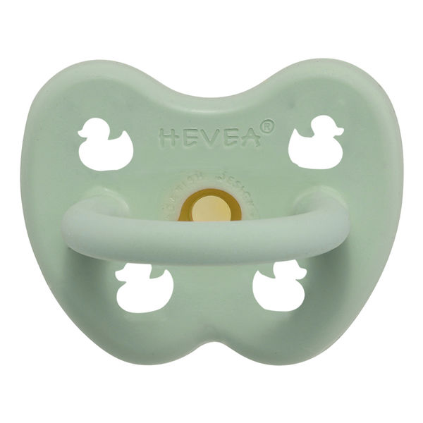 Hevea anatominen luonnonkumitutti "Mellow Mint" 0-3kk on 100% luonnonkuminen tutti, joka on ihmis- ja ympäristöystävällinen. Trendikkään värinsä Hevean tutit ovat saaneet myrkyttömästi mineraalipohjaisilla väreillä, jotka noudattavat FDA:n (US Food And Drug Admiration) määräyksiä.