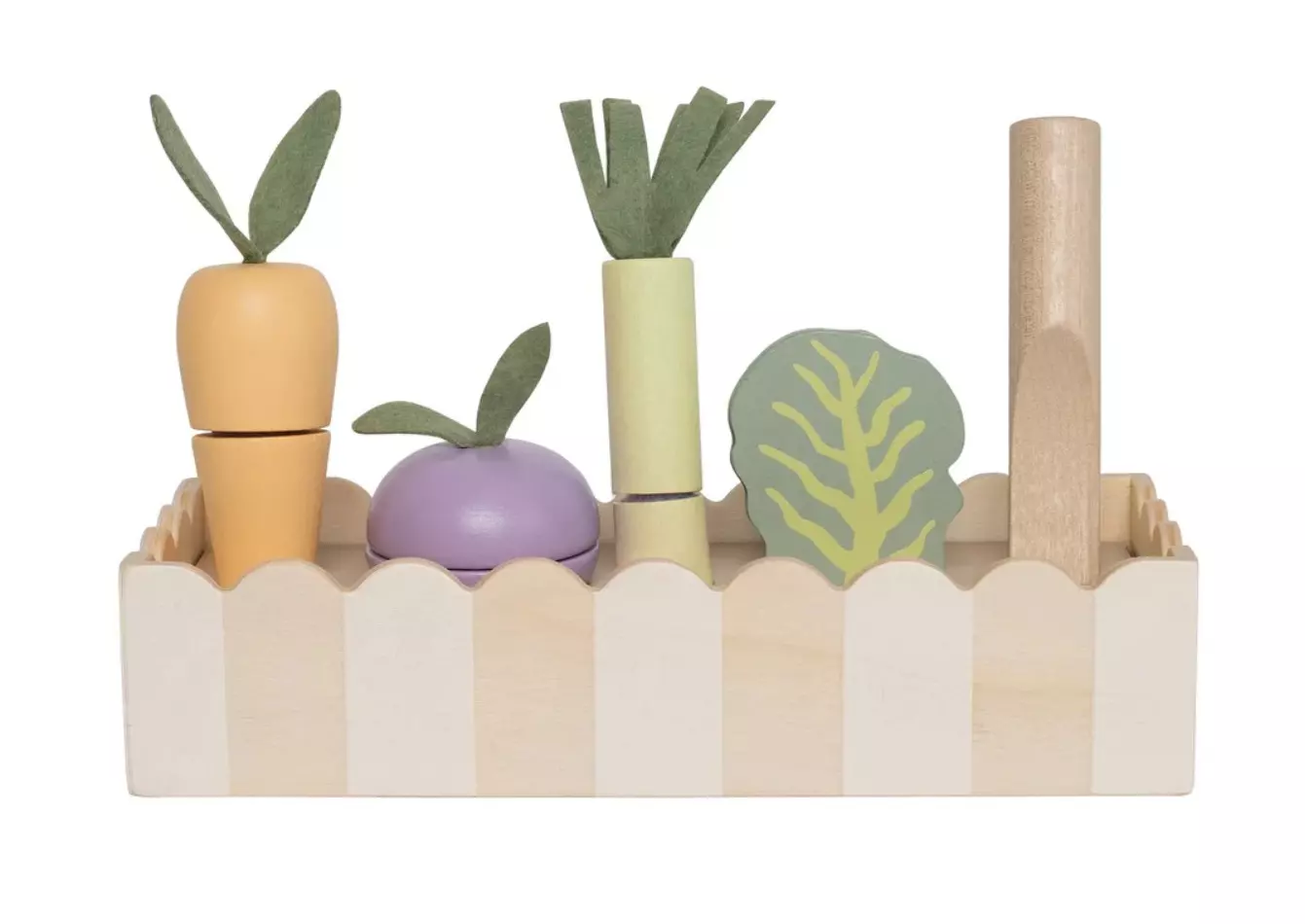 Jabadabado kasvislaatikko on puinen lelu, joka sisältää laatikon, veitsen sekä kasviksia, joita voi halkaista veitsellä. Kasviksissa on tarrakiinnitys.