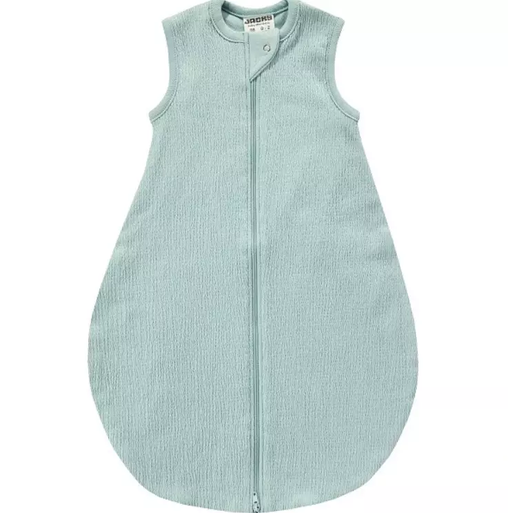 Jacky unipussi Aqua 0,5 Tog on ohuempi unipussi ympärivuotiseen käyttöön. Pehmeästä luomupuuvillasta valmistettu unipussi saadaan avattua kokonaan vetoketjulla, joka mahdollistaa helpon pukemisen ja vaipan vaihdon.