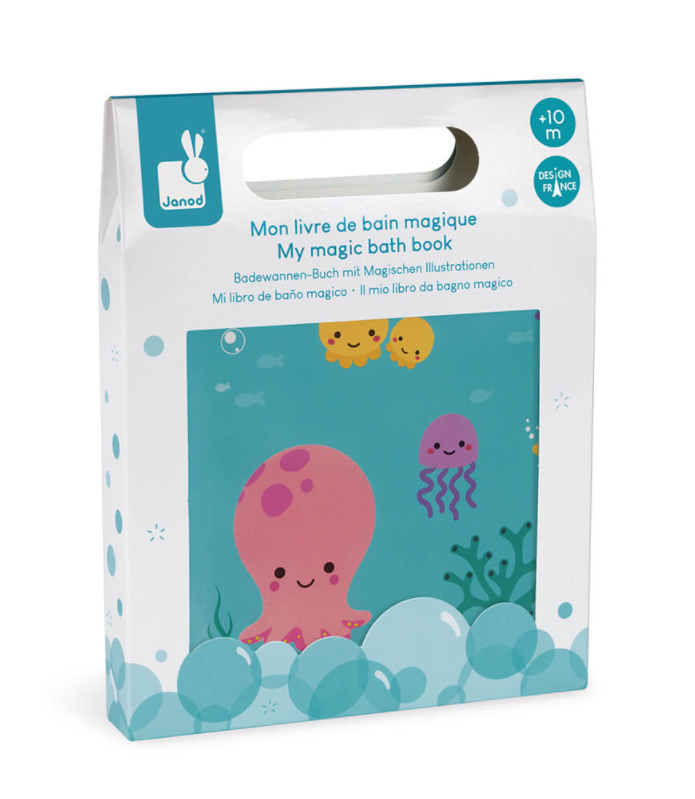 Janod kylpykirja piilotetuilla kuvilla ihmetyttää pientä kylpijää - vesi tuo kirjan kuvat näkyviin! Pehmeäkantinen kylpykirja tarjoaa mielekästä ja yllätyksellistä puuhaa kylpyhetkiin.... Lue lisää