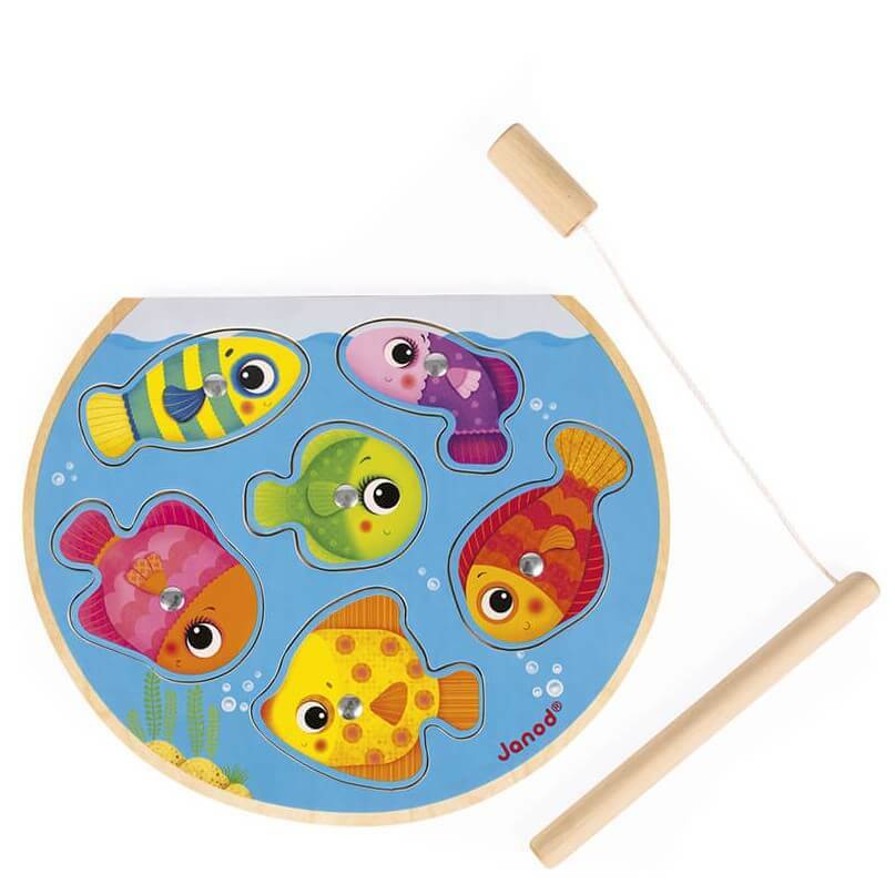 Janod magneettinen ongintapeli on hauska peli lapselle. Kalojen pyydystäminen ongella kehittää näönvaraista hahmottamista sekä silmä -ja käsiyhteistyötä. Ongintapeli sisältää puisen alustan, kuusi ongittavaa palaa sekä puisen ongen.