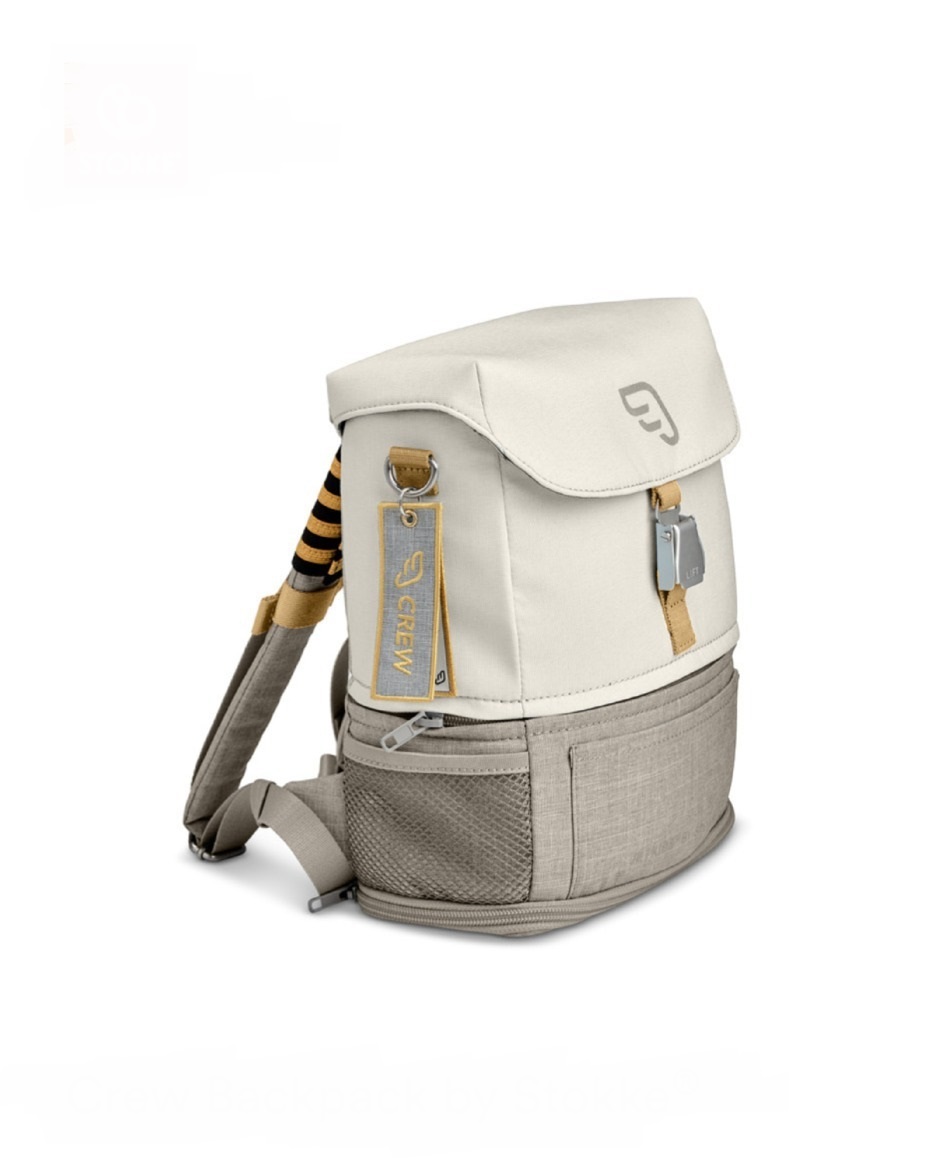 Jetkids by Stokke Crew lasten reppu on tyylikäs lentoaiheinen reppu lapselle päiväkotiin, kouluun tai matkoille mukaan. Reppuun mahtuu hyvin lapsen omat tärkeät esineet tai lelut. Repussa on säädettävät, pehmustetut olkahihnat ja sen kokoa saadaan pidennettyä avaamalla vetoketjut. Repussa on useita taskuja sisä- ja ulkopuolella. Repun mukana tulee myös istuinalusta.