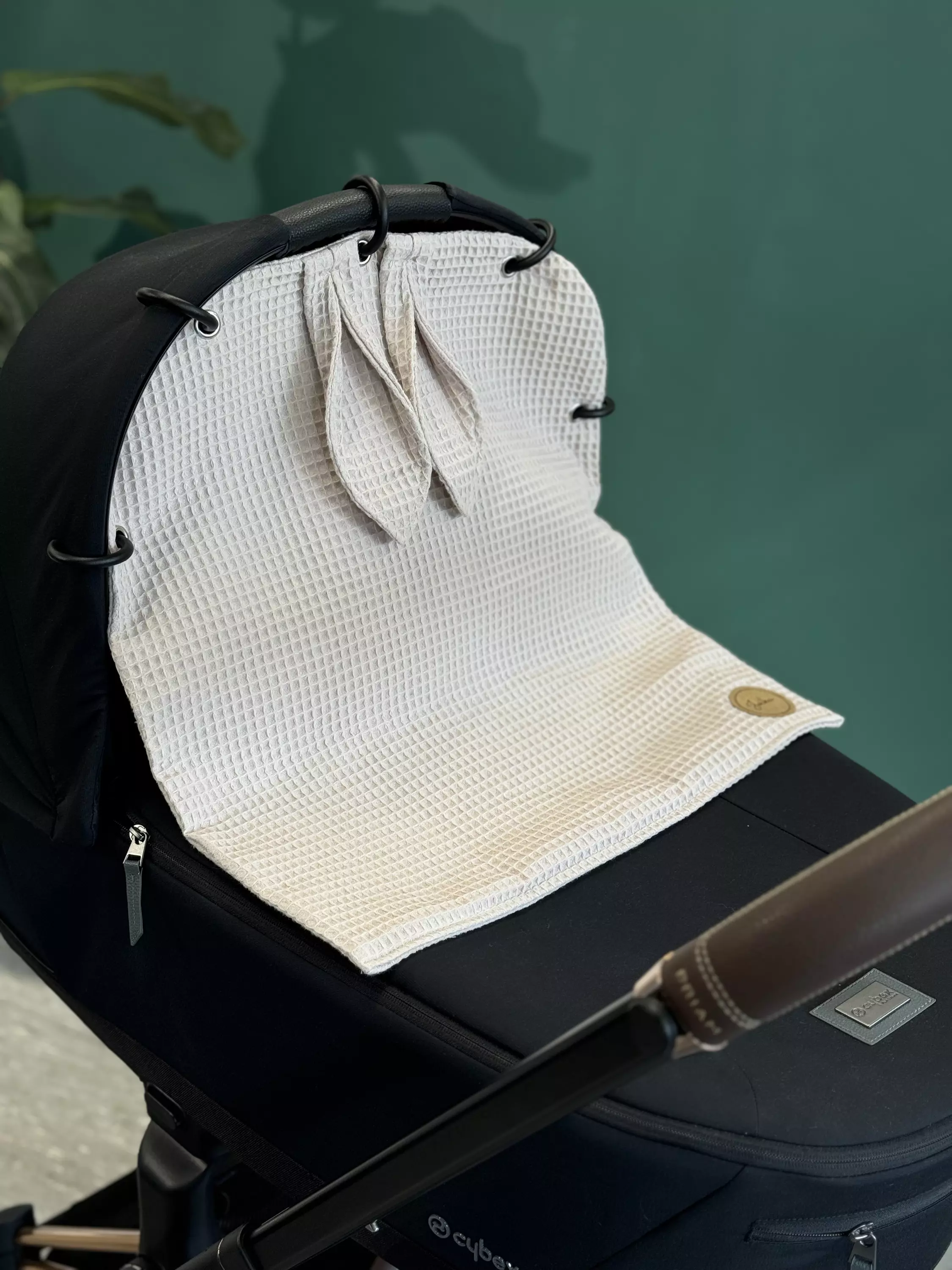 JoiKu vaunuverho on valmistettu pehmeästä vohvelikankaasta, ja siinä on suloiset pupun korvat. Vaunuverho suojaa lasta valolta ja ärsykkeiltä, kuten ötököiltä, sekä vaimentaa ääniä. Verho on helppo kiinnittää kuomuun kiinni viidellä kiinnityslenkillä, jotka tulevat verhon mukana.