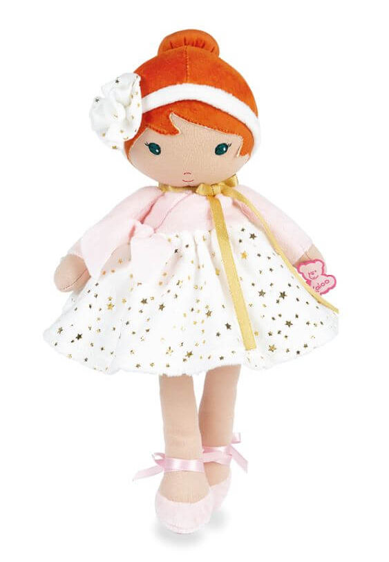 Kaloo pehmeä nukke "Valentine" soveltuu lapsen ensimmäiseksi nukeksi. Pehmeävartaloinen nukke on mitä viehättävin ystävä, joka on ihana napata kainaloon myös päiväunille. Nukke on ihanan pehmeä ja se on puettu somaan balleriinan asuun ja hiuksissa on kaunis panta. Nukke soveltuu jo ihan pienelle lapselle, koska siitä ei irtoa pieniä osia.