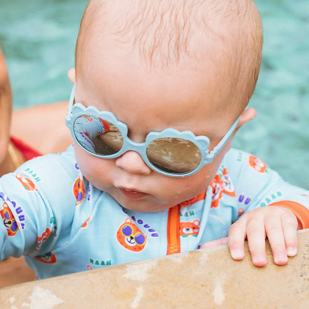 Ki ET LA Lion aurinkolasit on tarkoitettu noin 0-1 vuotiaille lapsille. Kevyestä ja pehmoisesta muovista valmistetut trendikkäät aurinkolasit antavat tehokkaasti suojaa lapsen herkille silmille ja tuntuvat miellyttävältä kasvoilla. Niitä voi myös vääntää ja kääntää lähes miten vaan ilman että ne rikkoutuvat. Aurinkolasien mukana tulee irrotettava remmi, jonka avulla ne saadaan pysymään pienen lapsen päässä paremmin.