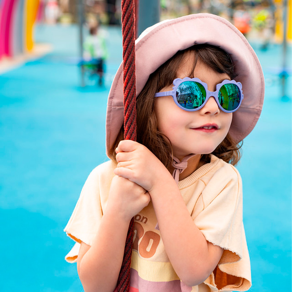 Ki ET LA Lion aurinkolasit on tarkoitettu noin 2-4 vuotiaille lapsille. Kevyestä ja pehmoisesta muovista valmistetut trendikkäät aurinkolasit antavat tehokkaasti suojaa lapsen herkille silmille ja tuntuvat miellyttävältä kasvoilla. Niitä voi myös vääntää ja kääntää lähes miten vaan ilman että ne rikkoutuvat. Aurinkolasien mukana tulee irrotettava remmi, jonka avulla ne saadaan pysymään pienen lapsen päässä paremmin.