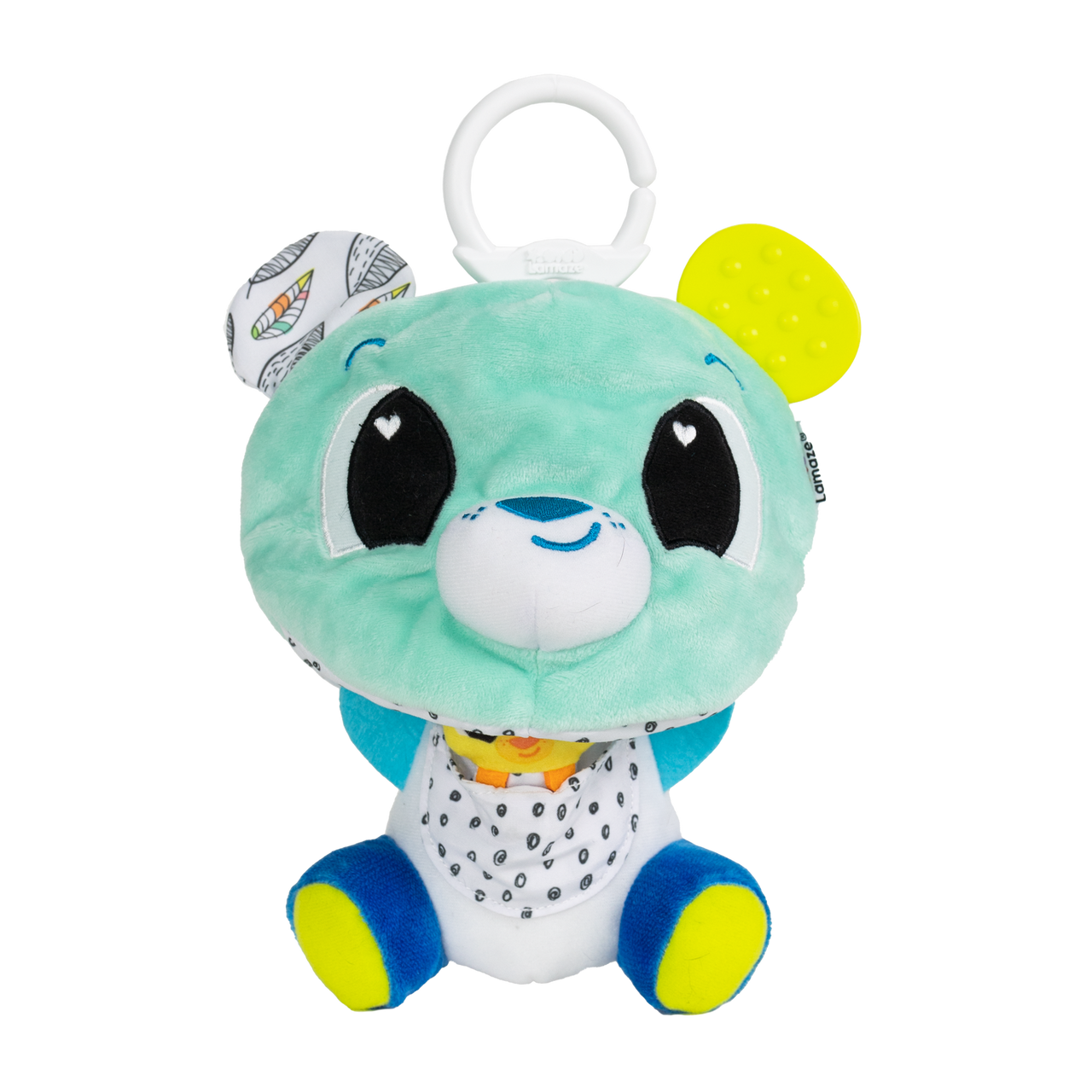 Lamaze 3in1 Surprise Clip&Go nalle on monipuolinen ja hauska lelu lapselle. Vetämällä nallen päälliosaa, alkaa se tärisemään. Nallella on myös tasku, jossa on sisällä pieni nalle. Lelun saa roikkumaan helposti esim. turvakaukaloon tai vaunuihin. Toinen nallen korvista on purulelu.