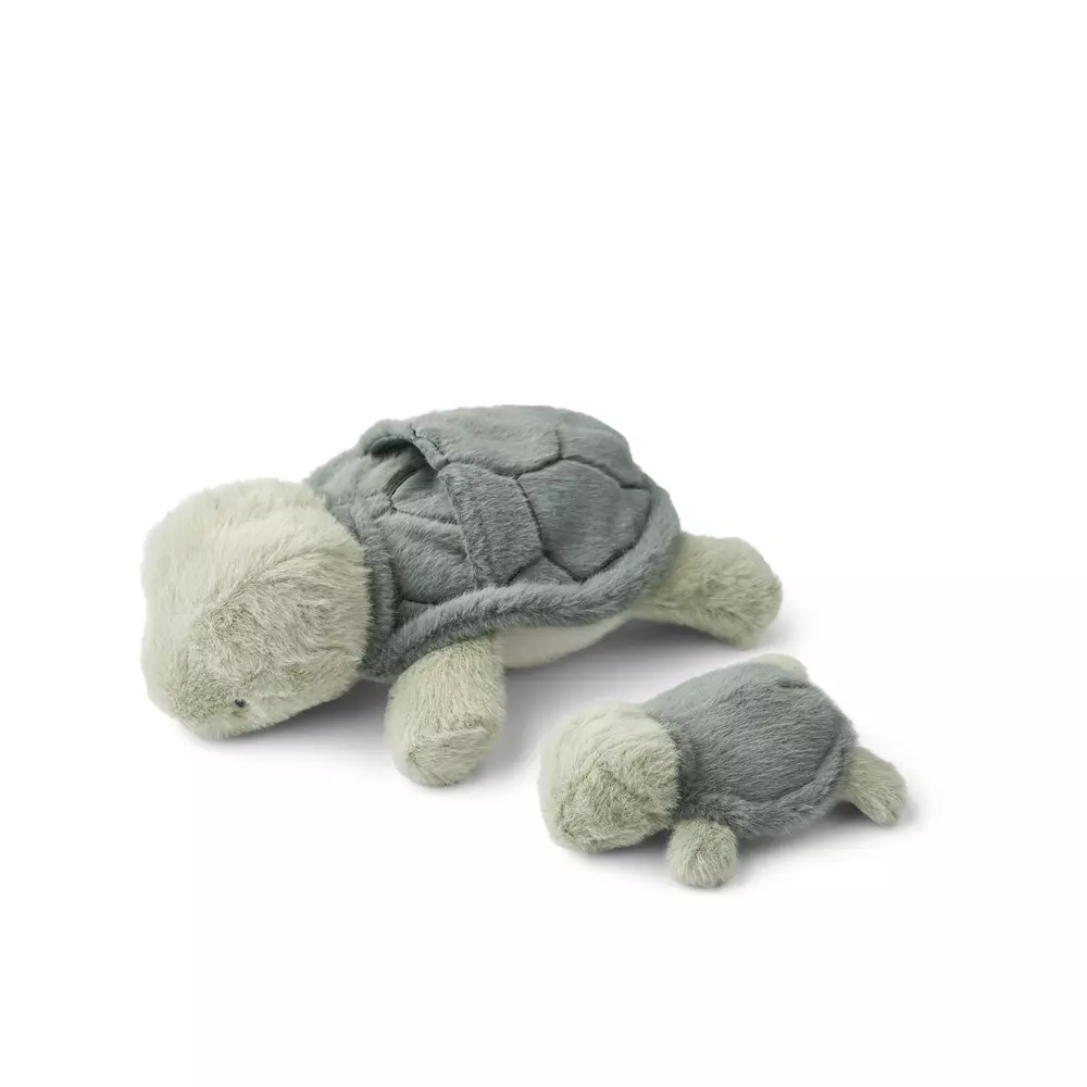 Liewood Berto & Baby kilpikonna pehmolelu on suloinen ja ihanan pehmeä pehmolelu lapselle, joka on valmistettu kierrätetystä polyesterista. Isommassa kilpikonnassa on tasku, johon pienemmän kilpikonnan saa kiinni.