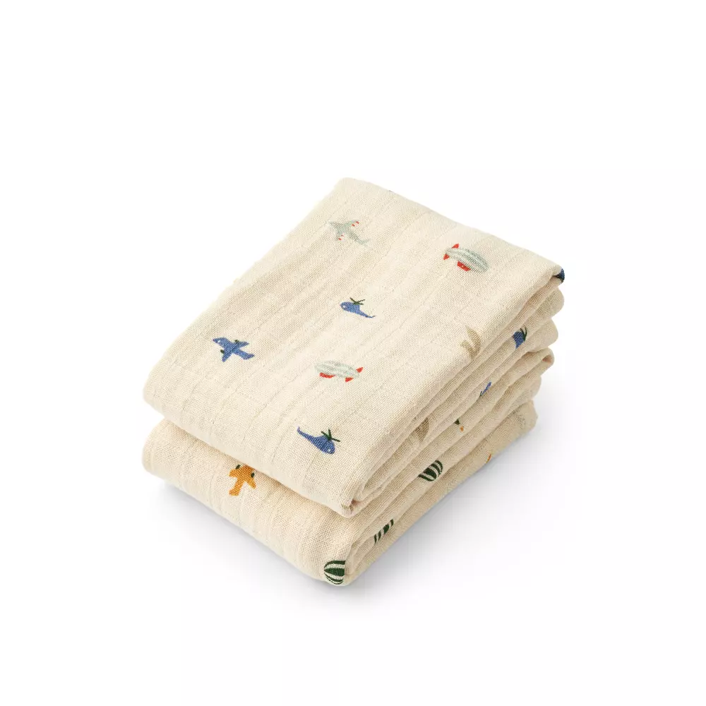 Liewood Lewis harsopaketti 2kpl sisältää puuvillaisia 65 x 65 cm kokoisia harsoja. Harsot ovat vauvan ensi kuukausien aikana yksi käytetyimmistä tuotteista. Ne ovat monipuoliset ja niitä voi käyttää muun muassa röyhtäyttämiseen, suojana tai vilttinä. Puuvillainen harso on hellä vauvan iholle ja se pehmenee entisestään käytössä ja pesussa.
