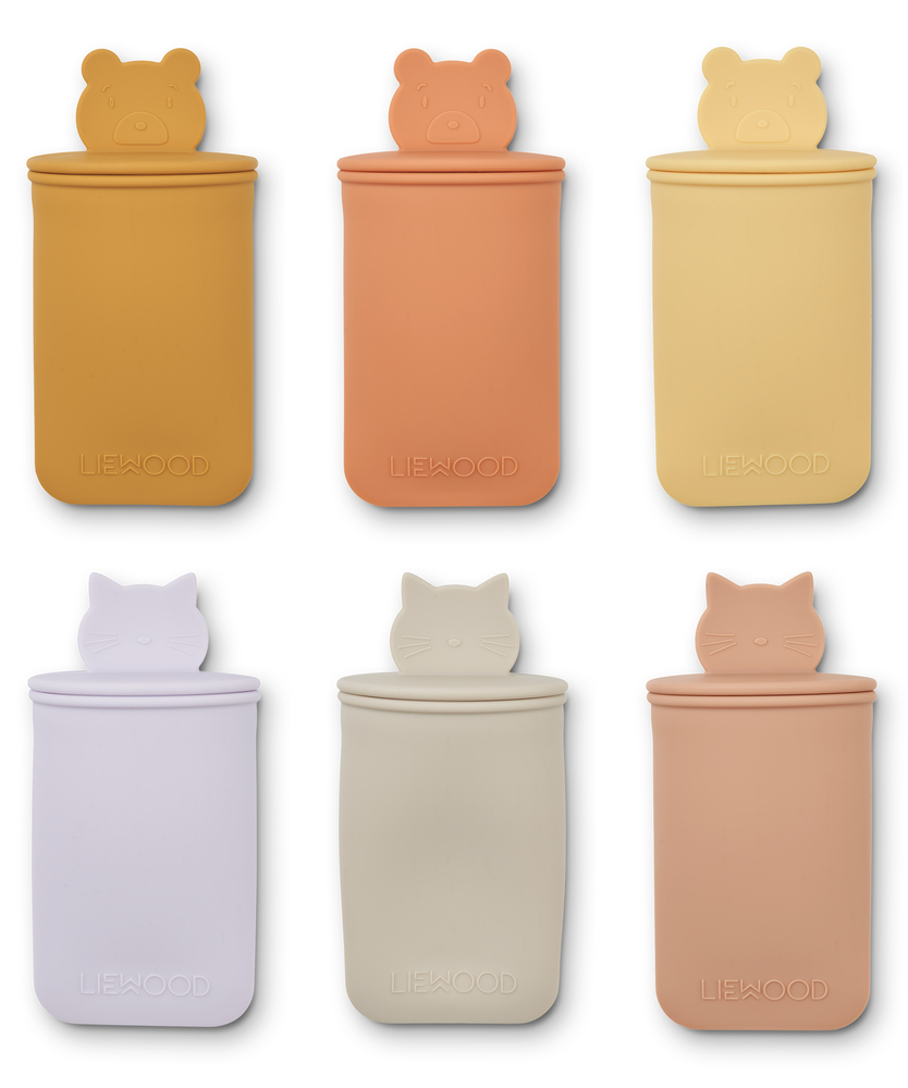 Liewood mehujäämuotit sisältää kuusi silikonista muottia, jotka voi täyttää esim. mehulla tai stmoothiella, ja pakastaa. Mehujäämuotit voi pestä astianpesukoneessa.