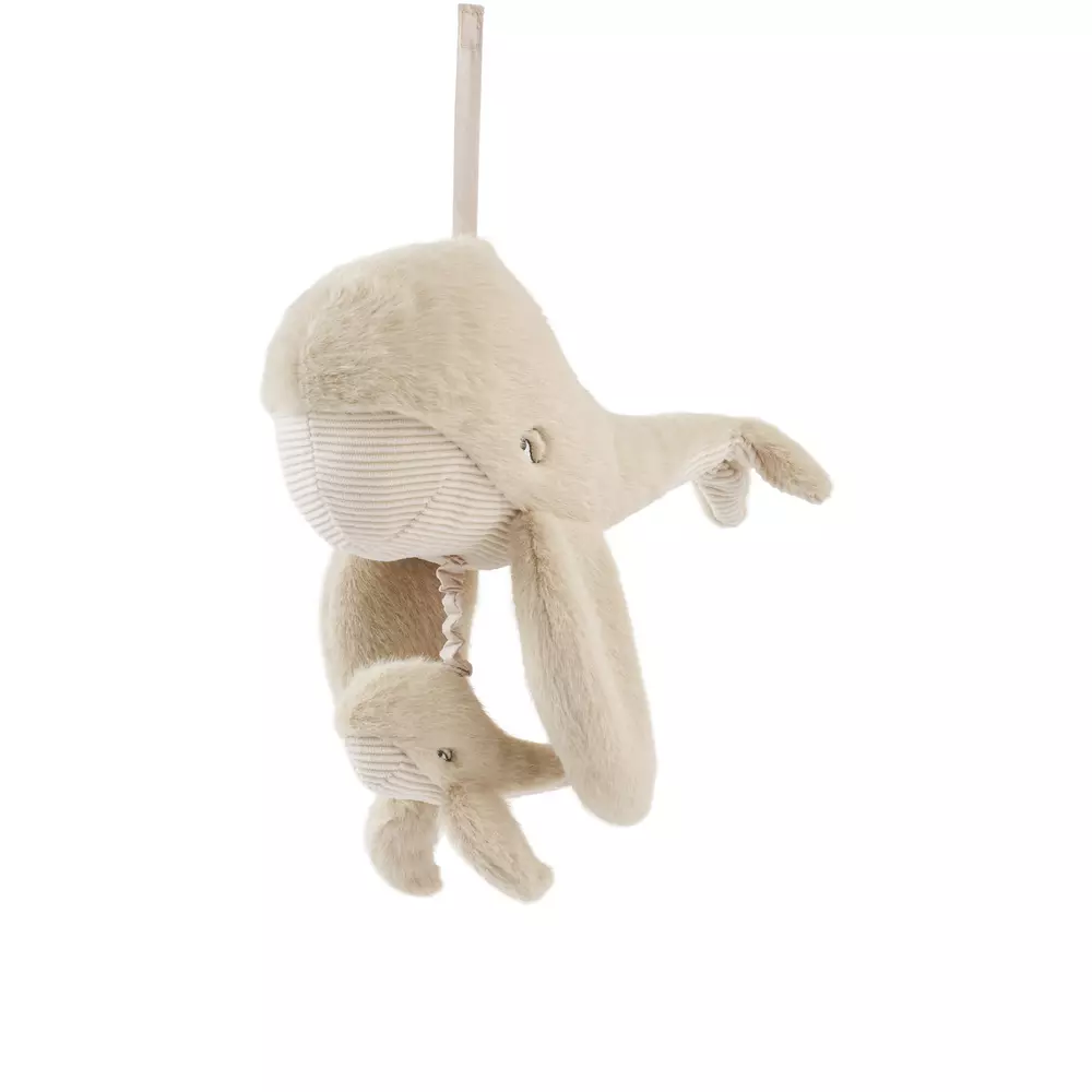 Liewood Mandy valas soittolelu on suloinen ja pehmeä, ja soittaa tuutulaulua (Brahms Lullaby), kun pienempää valasta vedetään. Tuutulaulu rauhoittaa lasta ja auttaa nukahtamisessa. Lelu saadaan roikkumaan sen päällä olevasta lenkistä esimerkiksi pinnasängdyn tai hoitotason yläpuolelle.