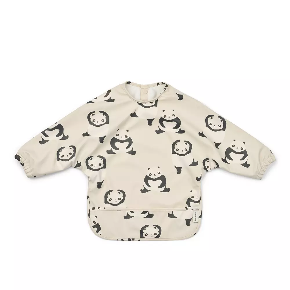 Liewood Merle hihallinen ruokalappu antaa laajan suojan. Ruokalapun kangas hylkii likaa ja se on pehmeää. Pitkien hihojen päissä on kuminauharesorit sekä ruokalapussa on kouru tippuvalle ruoalle. Ruokalappu saadaan tukevasti kiinni kahdella nepparilla.