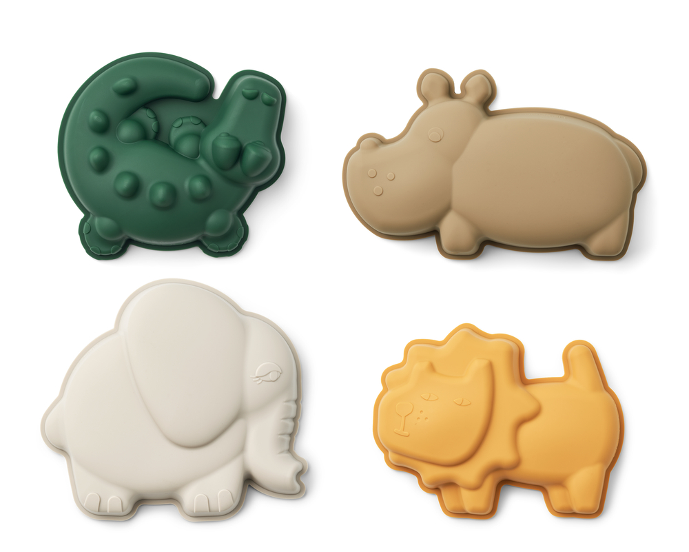 Liewood silikoniset hiekkamuotit sisältää neljä erilaista hiekkamuottia lapsen leikkeihin. Muotit on valmistettu kestävästä silikonista.
