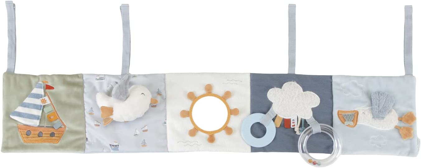 Little Dutch aktiviteettilelu "Sailors Bay" on pehmeä, meriteemainen ensikirja lapselle. Kirjassa on esim rapisevia ja heliseviä yksityiskohtia, joita lapsi voi tutkia, sekä vauvaturvallinen peili. Kirjassa olevien nauhojen avulla sen saa kätevästi kiinnitettyä pinnasänkyyn.