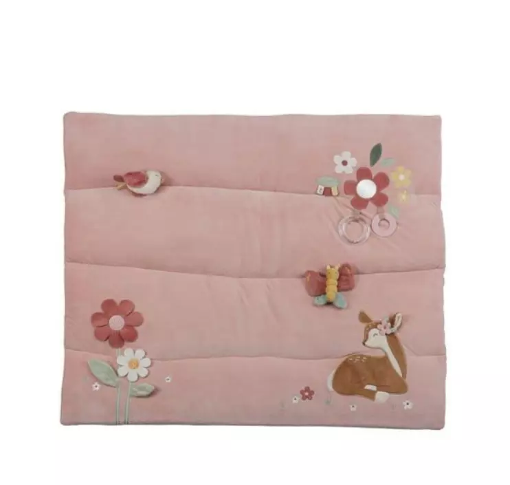 Little Dutch leikkimatto Fairy Garden on pehmeä ja monipuolinen leikkimatto. Leikkimatossa on esim. vauvaturvallinen peili, purulelu, helistin sekä erilaisia materiaaleja tutkittavaksi. Lapsi voi tutkia leikkimaton aktiviteetteja vatsallaan. Leikkimatto kehittää pienen lapsen aisteja ja motorisia taitoja.