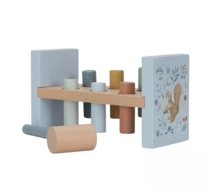 Little Dutch puinen hakka Forest Friends lelun avulla lapsi saa harjoiteltua syy-seurassuhdetta ja koordinaatiokykyä, kun hän hakkaa paketin mukana tulevan vasaran avulla kuutta puista palaa. Kun palat on "naulattu" toiselta puolelta, saadaan hakka käännettyä ja lapsi voi aloittaa uudestaan.