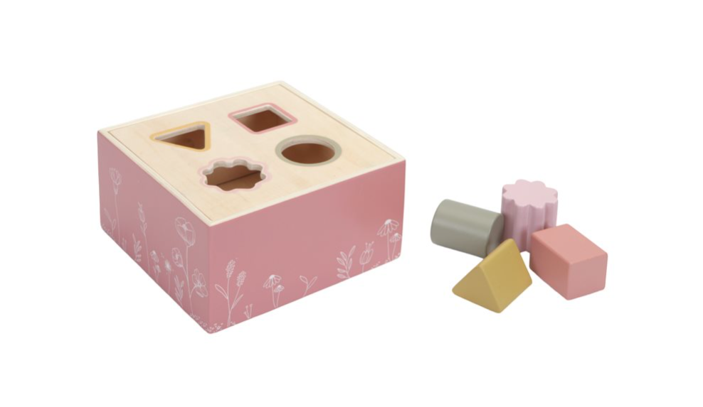Little Dutch puinen palikkapurkki pinkki pakkauksessa tulee neljällä erilaisella reiällä varustettu laatikko sekä neljä erilaista palaa, jotka sopivat laatikon aukkoihin. Lelun avulla lapsi oppii hahmottamaan erilaisia muotoja. Lelu on samalla opettavainen ja hauska lelu taaperolle.
