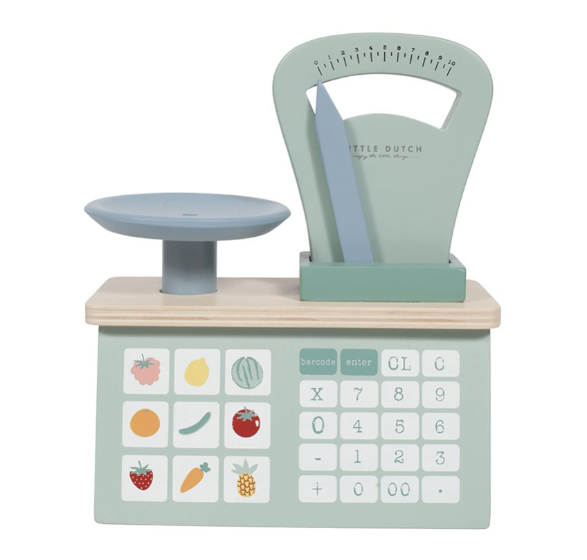 Little Dutch puinen vaaka on tarkoitettu lapsen roolileikkeihin. Kauniin värisessä vaa'assa on vaaka, mittari, numeroita ja kasvisten kuvia, jotta lapsi voi eläytyä vielä paremmin leikkiin.