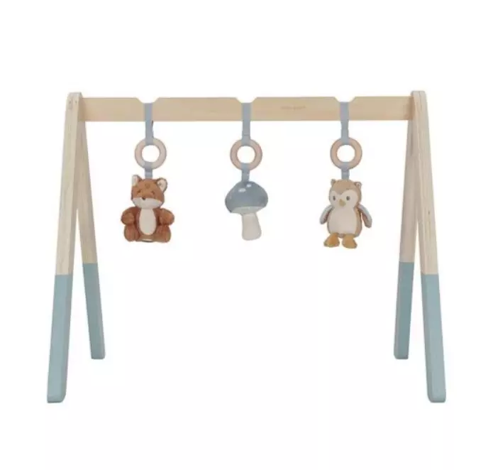 Little Dutch puinen vauvajumppa/leikkikaari on tarkoitettu vauvan ensimmäiselle puolelle vuodelle viihdyttämään häntä. Leikkikaari on valmistettu tukevasta puusta ja sen mukana tulee kolme lelua, kettu, sieni ja pöllö. Vauvajumppa leluineen kehittää lapsen käden ja silmän yhteistyötä ja stimuloi aisteja.