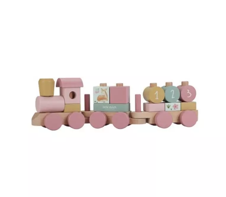 Little Dutch puujuna Fairy Garden on monipuolinen lelu. Junassa on veturi ja kaksi vaunua sekä useita pienempiä osia, jotka voidaan kasata vaunuihin kyytiin eri tavoilla. Palat ovat eri muotoisia ja eri värisiä, ja lelulla leikkiminen ja palojen kiinnittäminen kehittää lapsen motorisia kykyjä. Junassa on alla renkaat ja se pysyy tukevasti pystyssä.
