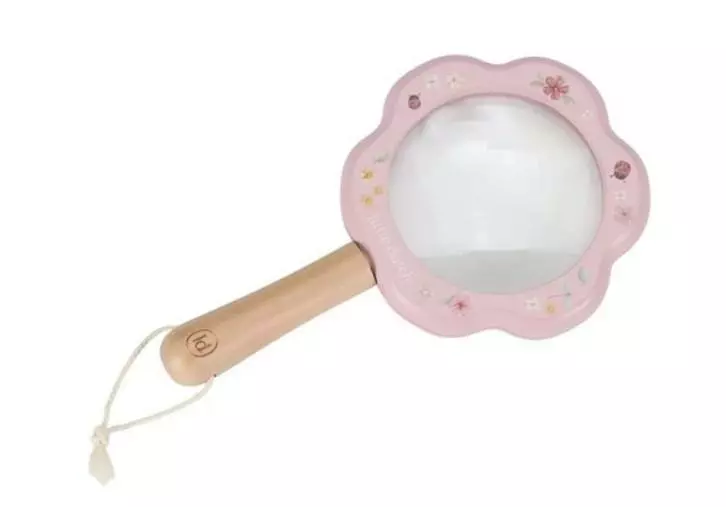 Little Dutch suurennuslasi on valmistettu puusta, ja siinä on pieni lenkki päässä, josta sen saa roikkumaan esim. reppuun. Suurennuslasilla on hauska tutkia esim. hyönteisiä tai kukkia. Suurennuslasissa on erikseen myös sisäänrakennettu minilinssi, jolla saa vielä tarkemmin tutkittua pieniä asioita.