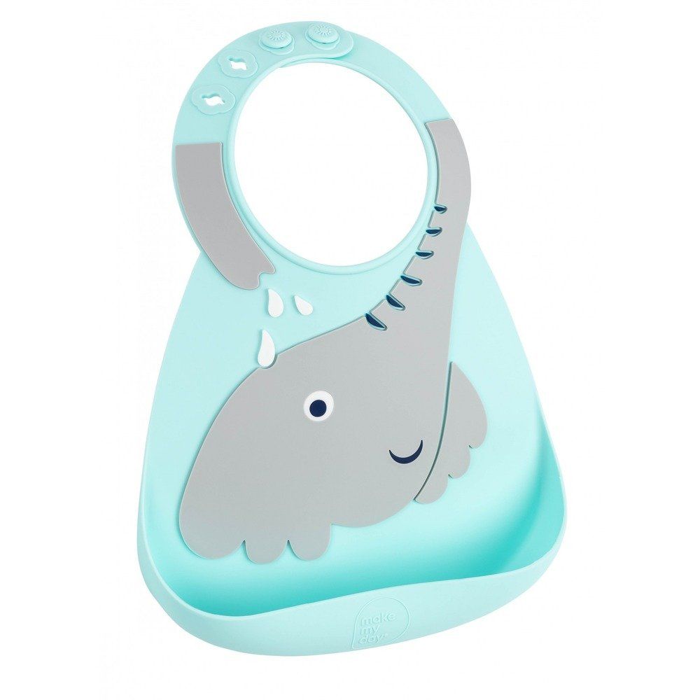Make My Day silikoninen ruokalappu on ihanan pehmeä ja kulutusta kestävä ruokalappu. Se on valmistettu 100% BPA-vapaasta silikonista, joka hylkii likaa ja se voidaan pestä astianpesukoneessa. Ruokalapussa on myös kouru, johon tippuva ruoka putoaa. Ruokalapun materiaali on niin pehmeää, että se saadaan rullattua kasaan.