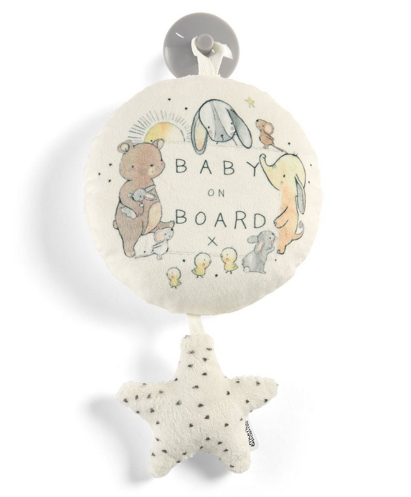 Mamas&Papas Baby On Board lelu "Always"" on suloinen kyltti autoon, joka osoittaa, että autossa matkustaa lapsi. Kyltissä on imukuppi, jolla se saadaan kiinnitettyä auton ikkunaan ja lapsi voi ihailla sitä.
