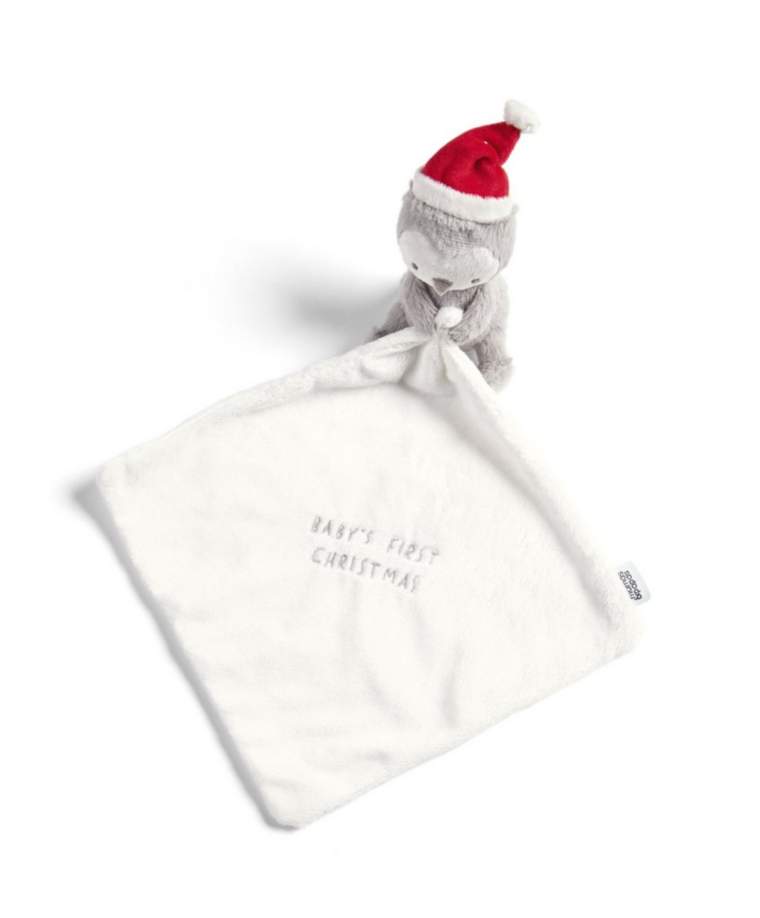 Mamas&Papas uniliini pingviini on suloinen jouluaiheinen uniliina lapselle. Uniliinassa on teksti "My First Christmas" ja se sopii hyvin esimerkiksi joululahjaksi vauvalle. Uniliina tuntuu ihanan pehmeältä ihoa vasten. Lisäksi harmaalla pingviinillä on päässään tonttulakki.