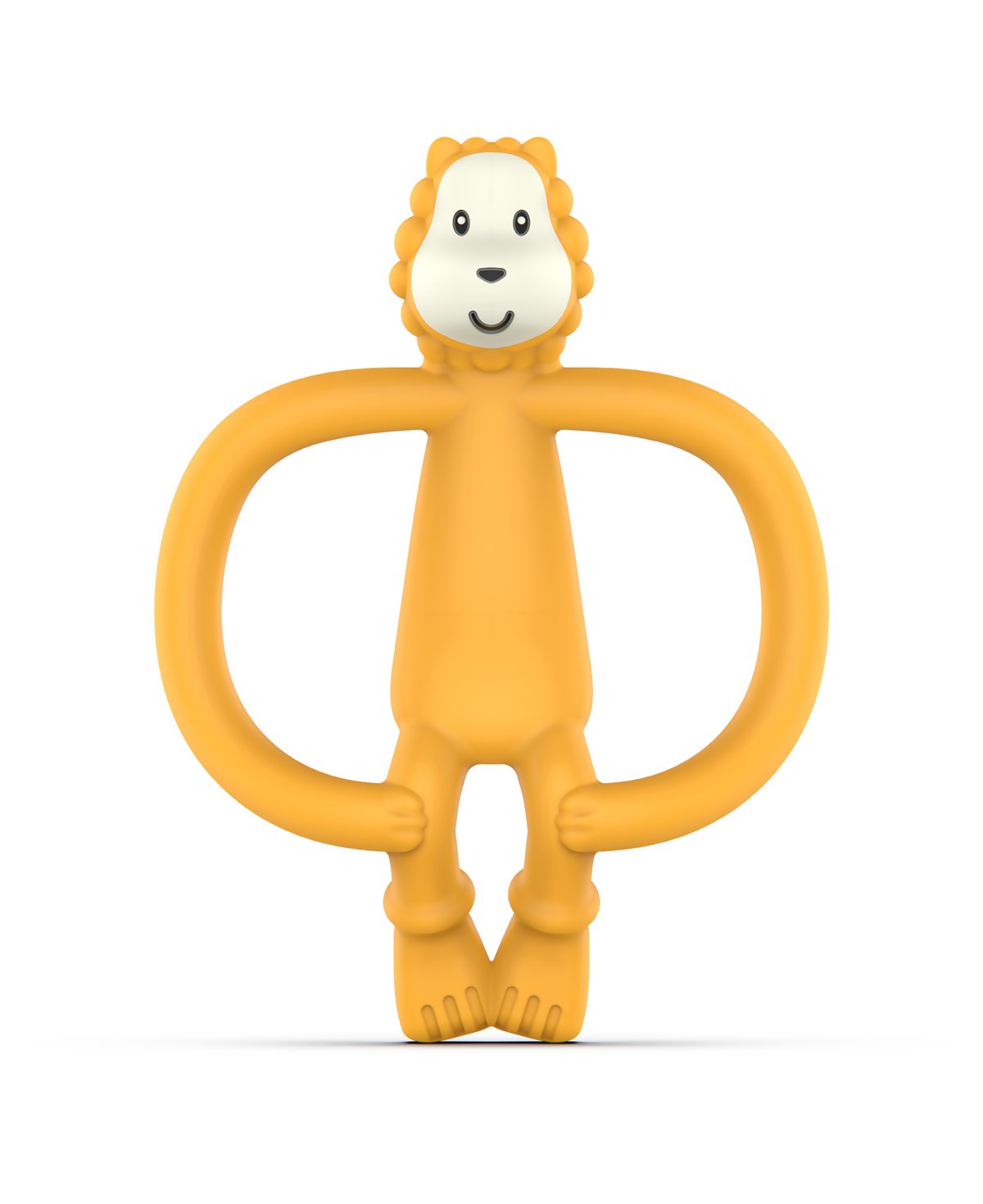 Matchstick Monkey Teething "Ludo Lion" purulelu on hauska purulelu lapselle helpottamaan kutiavien ikenian aiheuttamaa kipua. Purulelu on kevyt ja se sopii hyvin pieniin käsiin pideltäväksi. Leijonan muotoisessa purulelussa on erilaisia nystyröitä ja pintoja joihin lapsi voi hieroa ikeniään, erityisesti leijonan pään takana löytyviin "harjaksiin".
