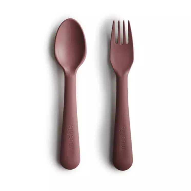 Mushie aterimet sisältää haarukan ja lusikan, jotka ovat valmistettu elintarvikelaatuisesta PP muovista. Aterimet voidaan pestä astianpesukoneessa.