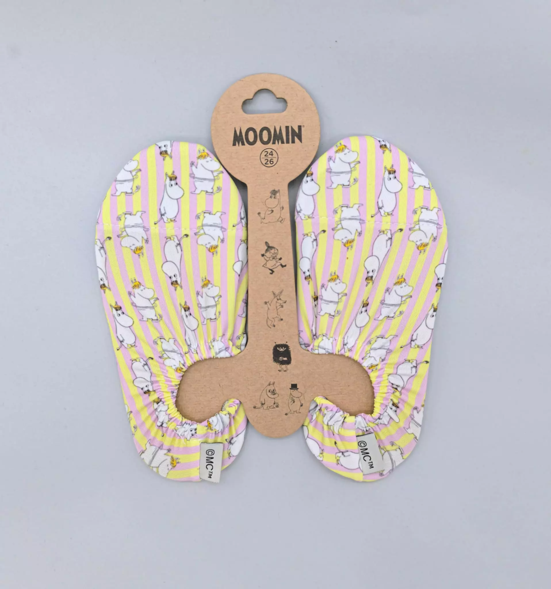 Muumi tossut ovat kevyet ja joustavat tossut, jotka sopivat erinomaisesti esim. päiväkotiin, harrastuksiin, sekä uimahalliin ja rannalle. Tossujen kangas kuivuu nopeasti, ja liukumaton pohja vähentää liukastumisen riskiä. Tossut suojaavat jalkoja myös esim. kuumalta hiekalta. Tossuissa seikkailee suloiset Muumihahmot.