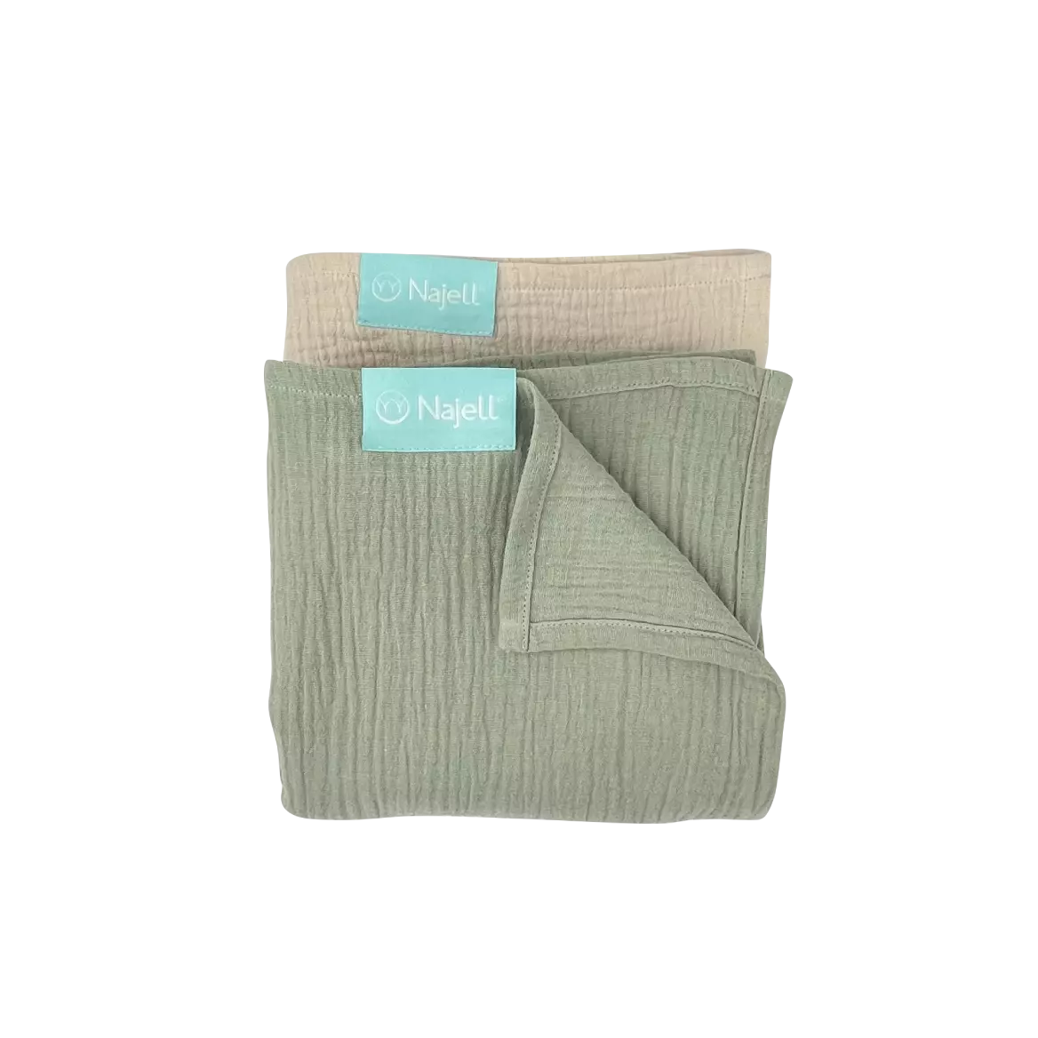 Najell harsot 2kpl sisältää kaksi 75x 75 cm harsoliinaa. Pehmeät musliiniharsot on valmistettu 100% puuvillasta ja ne sopivat käytettäväksi esimerkiksi lastenvaunuissa, vaipanvaihdossa, liinana, alustana tai ruokalappuna. Harsoliinat ovat tarpeellisia kotona, kävelyillä ja matkoilla.