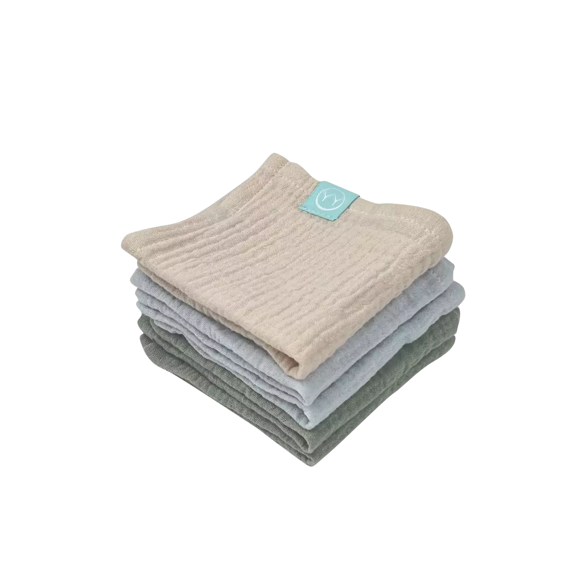 Najell pienet harsot sisältää viisi samankokoista harsoa eri väreissä. Käytännölliset harsot ovat valmistettu 100% puuvillasta, ja ne ovat hellät lapsen iholle. Harsoja voi käyttää esim röyhtäyttämiseen, sekä pienten vahinkojen siivoukseen.