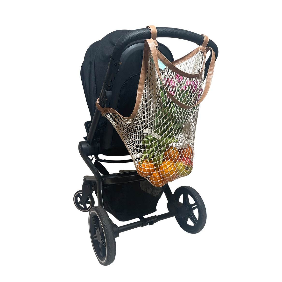 Najell verkkokassi rattaisiin saadaan helposti kiinnitettyä rattaisiin tai vaunuhin. Universaali kassi sopii useimpiin vaunumalleihin, ja se on helppo kiinnittää tarranauhoilla. Kassissa on myös kantokahva, joten sitä voi kantaa myös olalla.