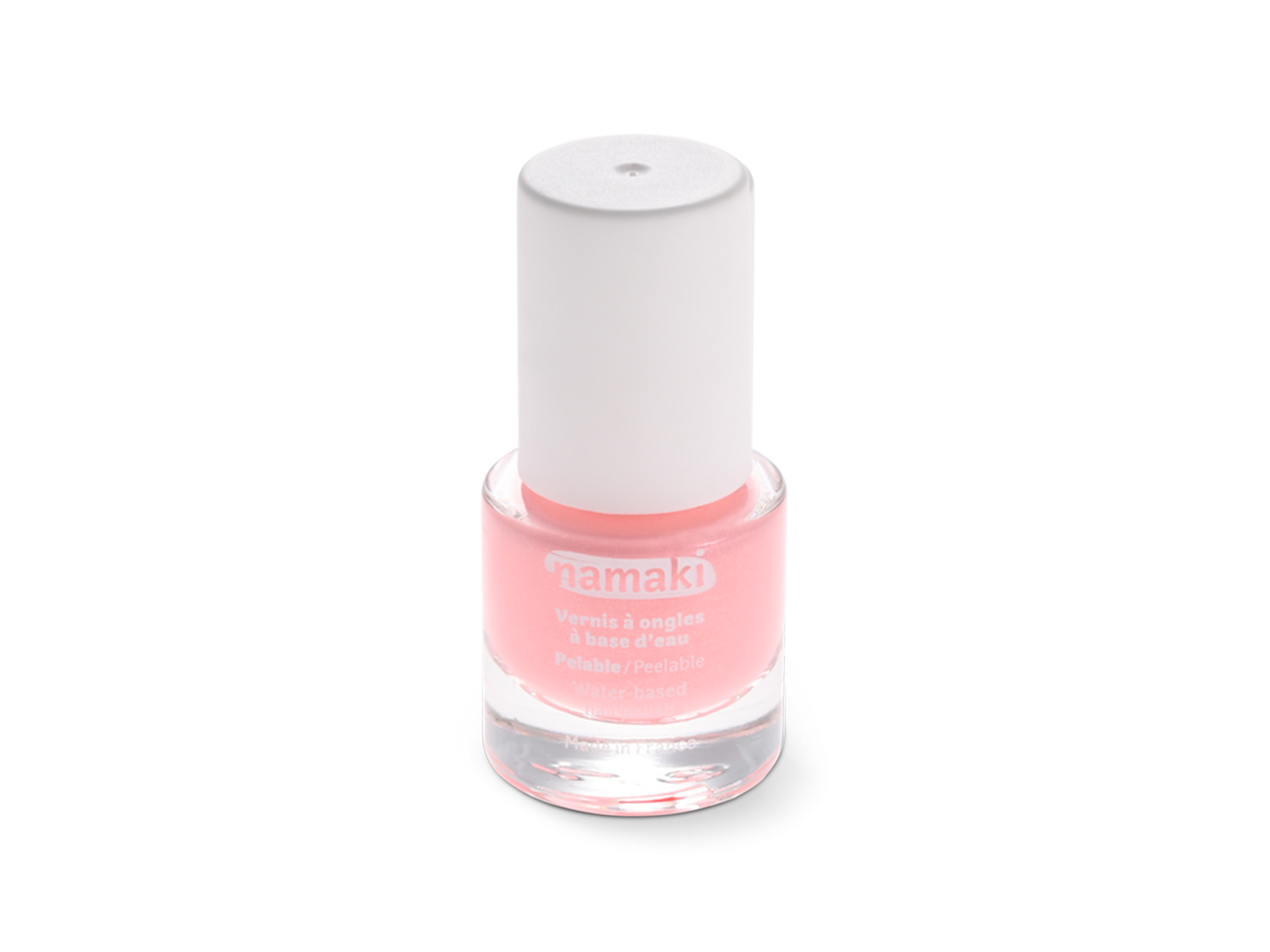 Namaki vesipohjainen kynsilakka on luonnonmukainen ja turvallinen valinta lapselle. Kynsilakka ei sisällä parabeeneja, formaldehydia, ftalaattia, tolueenia, kamferia tai nanohiukkasia. Tuote on hajusteeton. Kynsilakka kuivuu nopeasti ja se kestää käsienpesua. "Peel off" -kynsilakka poistetaan kuorimalla se kevyesti kynnellä.