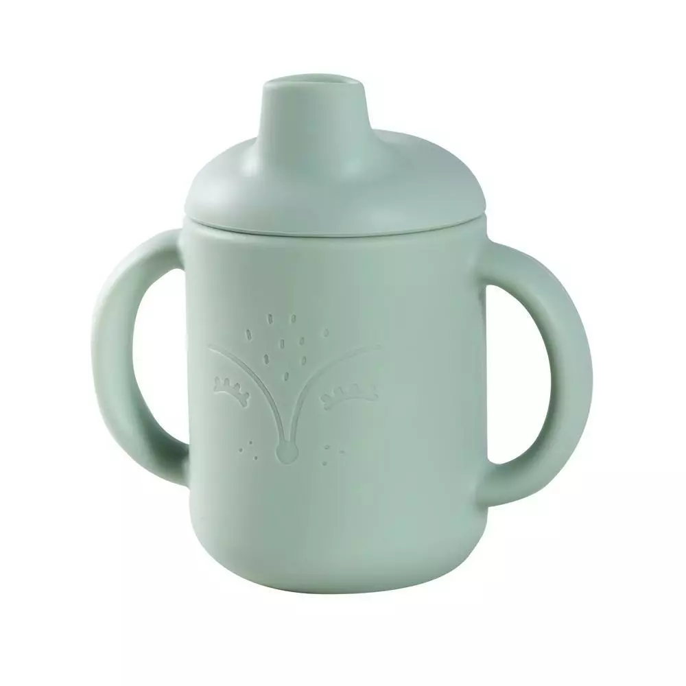 Nordbaby silikoninen nokkamuki on kaksikahvainen muki, josta pienempikin lapsi saa hyvän otteen. Pehmeä silikoni on miellyttävän tuntuinen, ja kevyestä mukista on helppo pitää kiinni. Mukissa on suloinen kettukuviointi, ja sitä pystyy myöhemmin käyttämään myös ilman kantta.