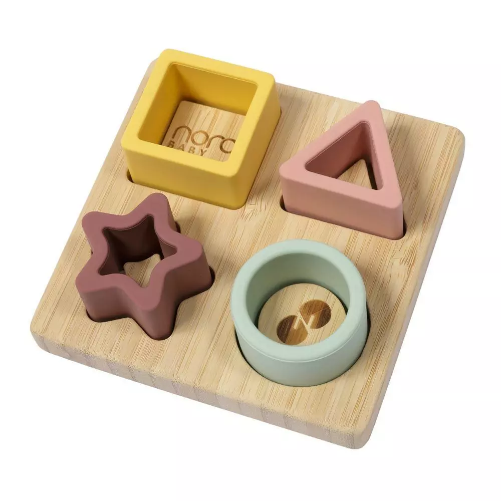 Nordbaby silikoninen palapeli aktivoi ja kehittää lapsen hienomotorisia taitoja. Puisessa laudassa on silikonista valmistettuja geometrisiä muotoja, joita lapsi voi yhdistää oikeisiin kohtiin. Silikoniset palat toimivat myös puruleluna kutiseville ikenille.