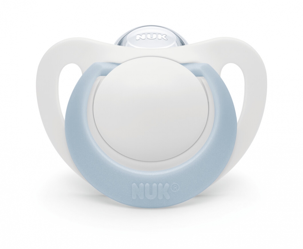 Nuk huvitutti Star 0-6kk 2kpl on ortodontisesti NUK muotoiltu, ja siinä on myös anatomisesti muotoiltu suojaosa. Mukana tulevaa koteloa voi käyttää kätevästi suojakotelona.