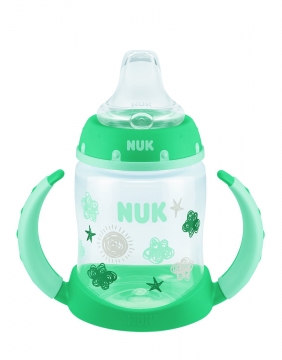 Nuk nokkamuki Learner Bottle Temperature Control 150 ml 6 - 18 kk on nokkamuki, jossa on Spill Proof - nokka, joka ei vuoda. Temperature Control -nokkamukissa on lämpötilaindikaattori, joka muuttaa väriä, kun juoma on liian kuuma (normaalisti sininen indikaattori muuttuu valkoiseksi). Nokkamukin mukana tulee korkki ja pitävät kahvat, joista lapsen on helppo pitää kiinni.