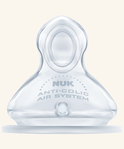 Nuk pullotutti First Choice+ 2 kpl 0 - 6 kk M on pehmeä silikoninen tutti, joka on muotuiltu muistuttamaan rinnapäätä imetyksen aikana. M-koon tuttipäässä on keskikokoinen syöttöreikä. First Choice+ tuttipää edesauttaa luonnollista ja terveellistä leukaluun kehitystä. Nuk koliikkia ehkäisevä Air System ilmaventtiili minimoi ilman nielemisestä aiheutuvaa koliikkia.