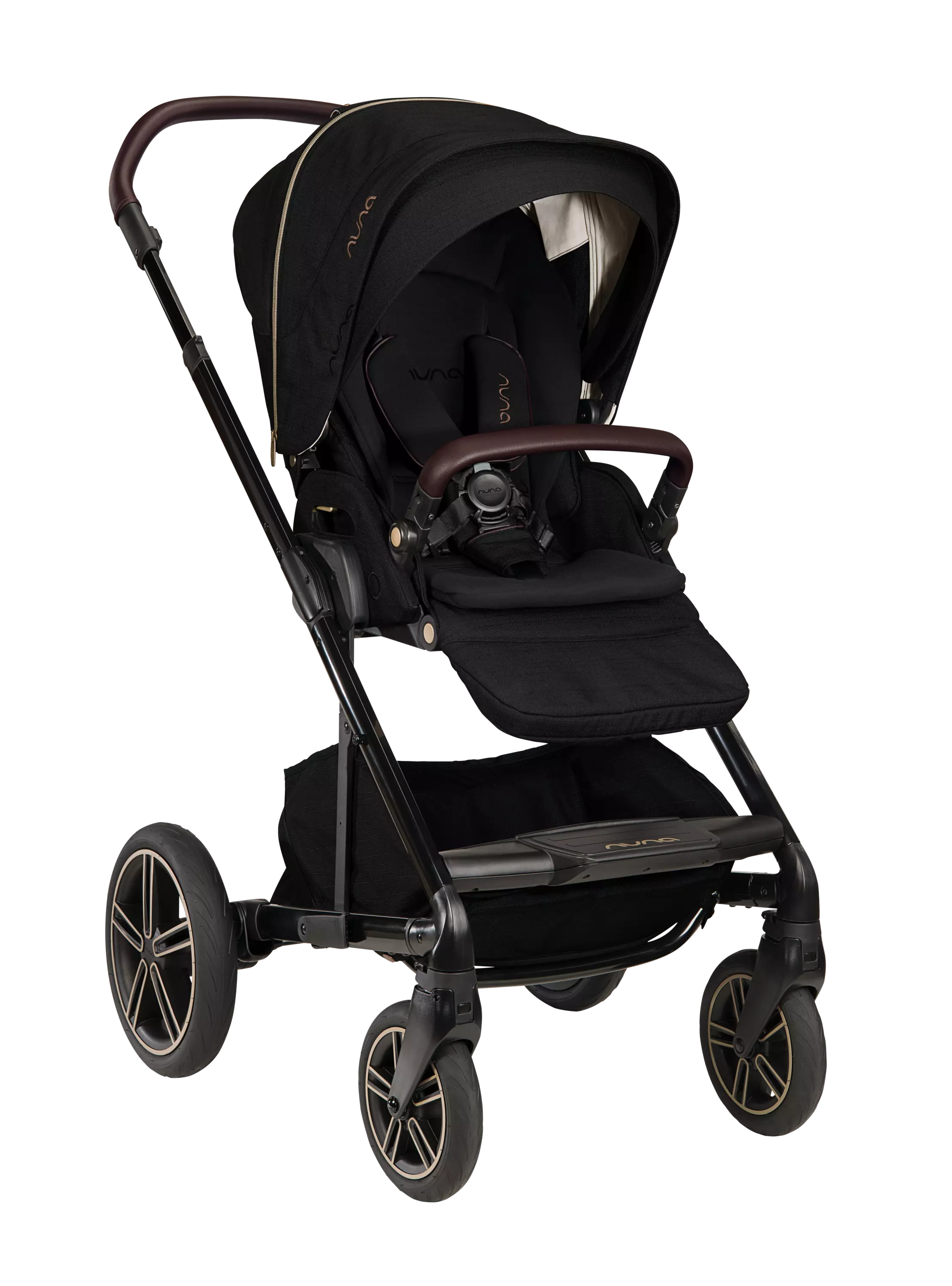 Nuna MIXX next ratas "Riveted" on osa ylellistä mallistoa, jossa on käytetty metallisia yksityiskohtia. Mallisto tasapainottelee pehmeän ja kovan välimaastossa. Luonnolliset syvät sävyt yhdessä metallisien ja pronssisien yksityiskohtien kanssa luovat ajattoman ja ylellisen tyylin. Rattaassa on kiiltävä musta runko ja mustassa kankaassa on rakennetta. Yksityiskohdissa on yhtenevä pronssinen värimaailma. Vegaaniset nahka yksityiskohdat ovat kauniin ruskeat ja ne tuovat rattaisiin ripauksen lämpöä.