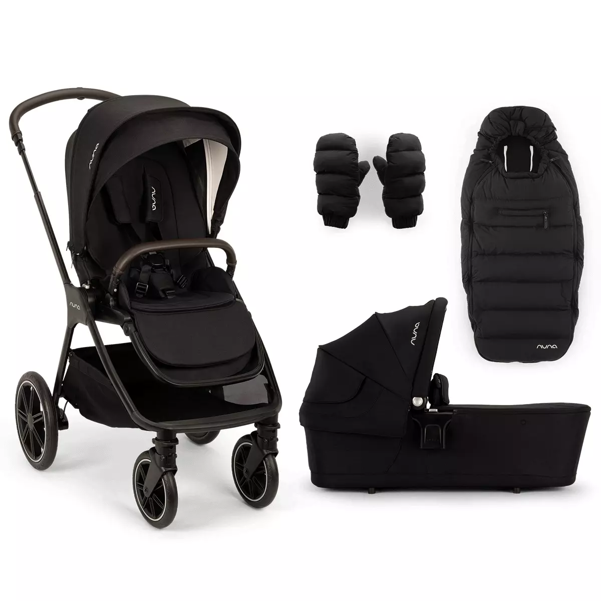 Paketin mukana tuleva talvilämpöpussin ja käsimuhvien sisäpinnan kangas on valmistettu tencelin ja merinovillan yhdistelmästä, joka pitää tehokkaasti lämpöä. Lämpöpussi saadaan avattua kokonaan, helpottaen näin lapsen asettamista ja pois ottamista. Kiristysnauha pussin yläosassa pitää kylmän ja viiman loitolla. Kokonaan avautuvassa jalkaosassa on kätevä suoja kengille. Käsimuhvit kiinnittyvät rattaan työntöaisaan magneetilla, ja pitävät työntäjän kädet lämpiminä kylmillä keleillä liikuttaessa. Mukana tulevilla adaptereilla rattaan runkoon saadaan kiinnitettyä turvakaukalo, jolloin ratas toimii kätevänä Travel Systemina. Rattaaseen saadaan kiinnitettyä seuraavat Nuna turvakaukalot: ARRA flex, ARRA next, PIPA next, sekä PIPA urbn.